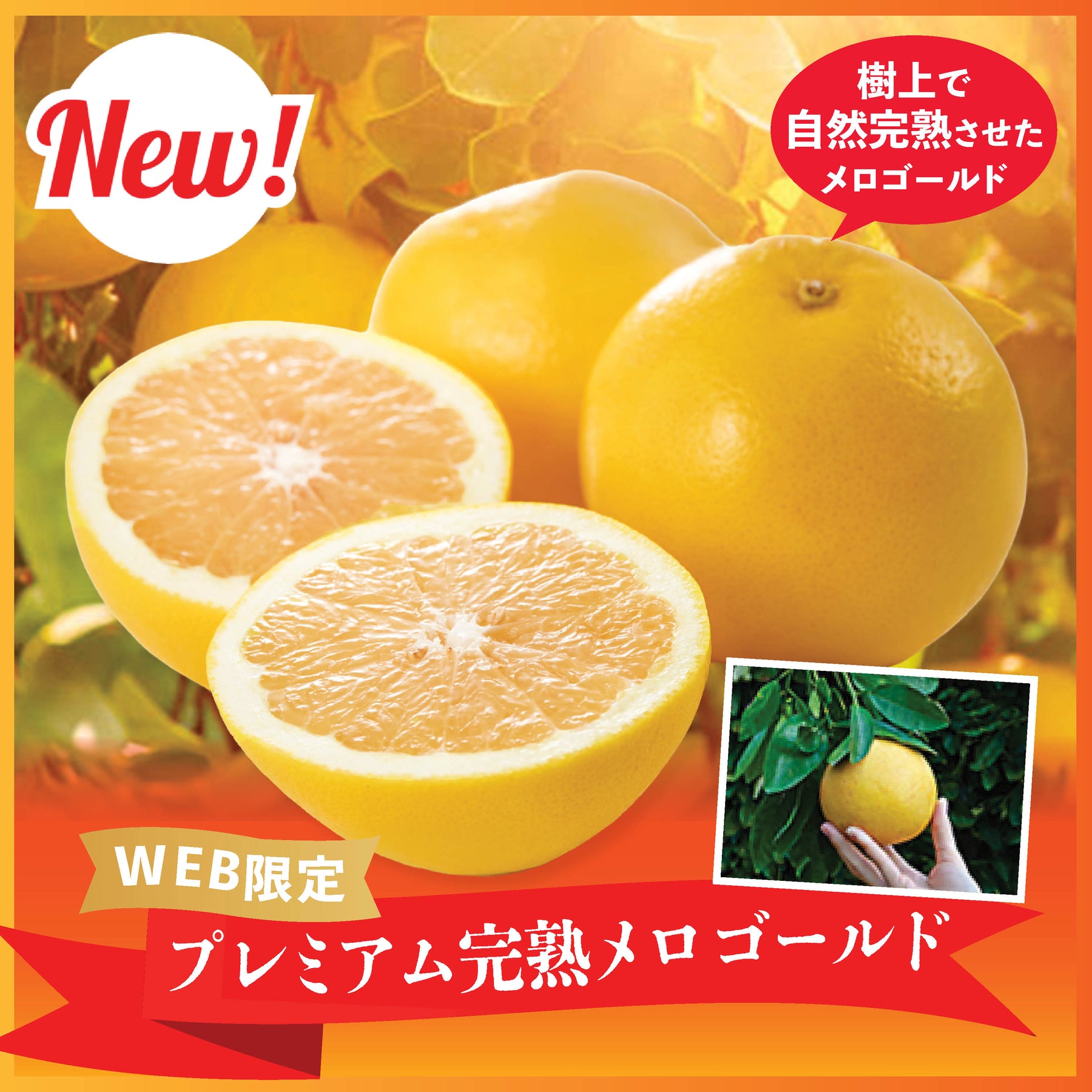 プレミアム完熟メロゴールドは、果実が十分に熟すまで樹の上で丁寧に育てました。