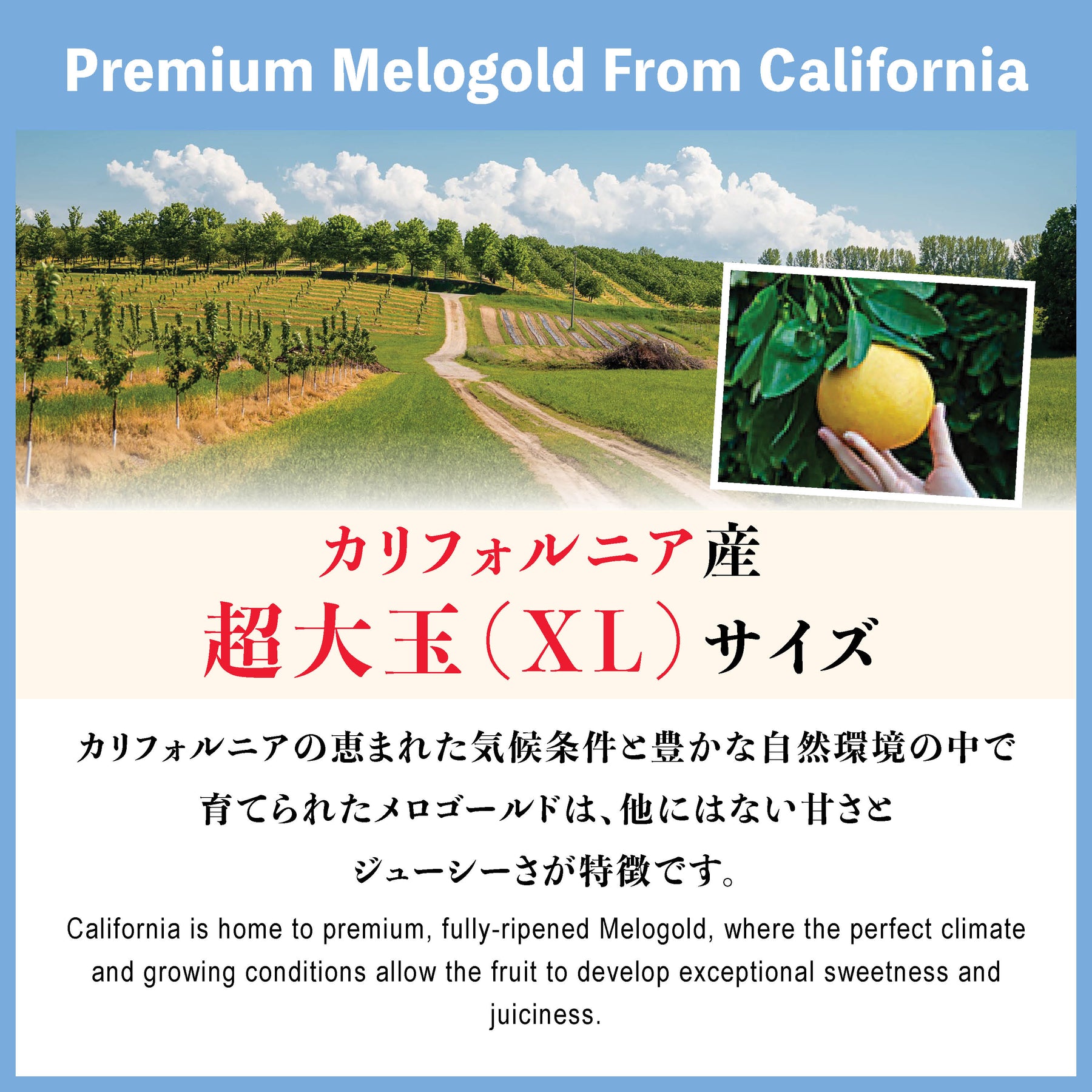 2月より完熟のタイミングで収穫し、際立つ甘さ、やさしい酸味、そしてみずみずしい果汁が特長です。